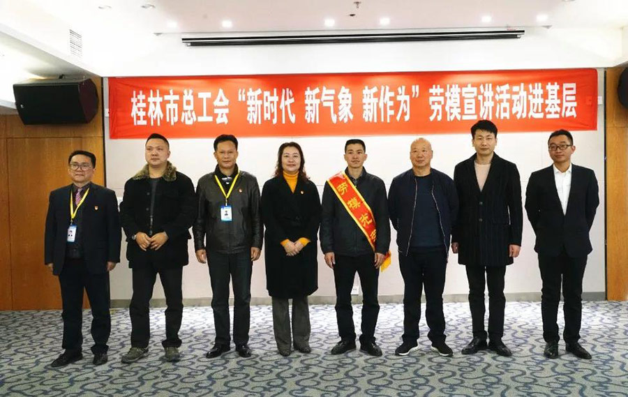 恰逢全國上下學(xué)習(xí)貫徹習(xí)近平總書記同中華全國總工會(huì)新一屆領(lǐng)導(dǎo)班子成員重要講話精神、隆重慶祝改革開放40周年和自治區(qū)成立60周年之際,11月22日上午,新城投資集團(tuán)工會(huì)委員會(huì)在新城商務(wù)酒店辦公樓十樓會(huì)議廳舉辦了“新時(shí)代,新氣象,新作為”勞模宣講活動(dòng)。市總工會(huì)黨組成員、財(cái)貿(mào)工會(huì)主席劉寶成等領(lǐng)導(dǎo)以及市總工會(huì)代表、新區(qū)管委黨群團(tuán)代表、市文投集團(tuán)代表、新城投資集團(tuán)代表及中建八局二公司廣西公司桂林基地項(xiàng)目代表參加了宣講會(huì),會(huì)議由新城投資集團(tuán)黨支部委員、工會(huì)主席譚力源主持。