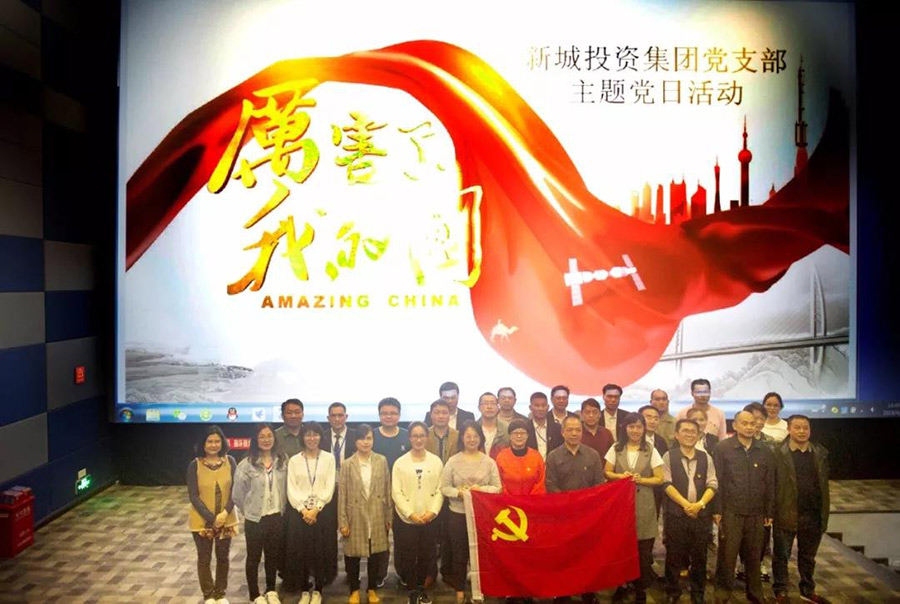 2018年4月9日下午,新城投資集團(tuán)黨支部組織全體黨員、入黨積極分子、申請入黨培訓(xùn)班學(xué)員及群團(tuán)工作人員集中觀看了大型紀(jì)錄片《厲害了,我的國》。觀影前,大家舉黨旗合影留念,齊聲吶喊“厲害了,我的國”,表達(dá)內(nèi)心的激動(dòng)與喜悅,記錄最美瞬間。