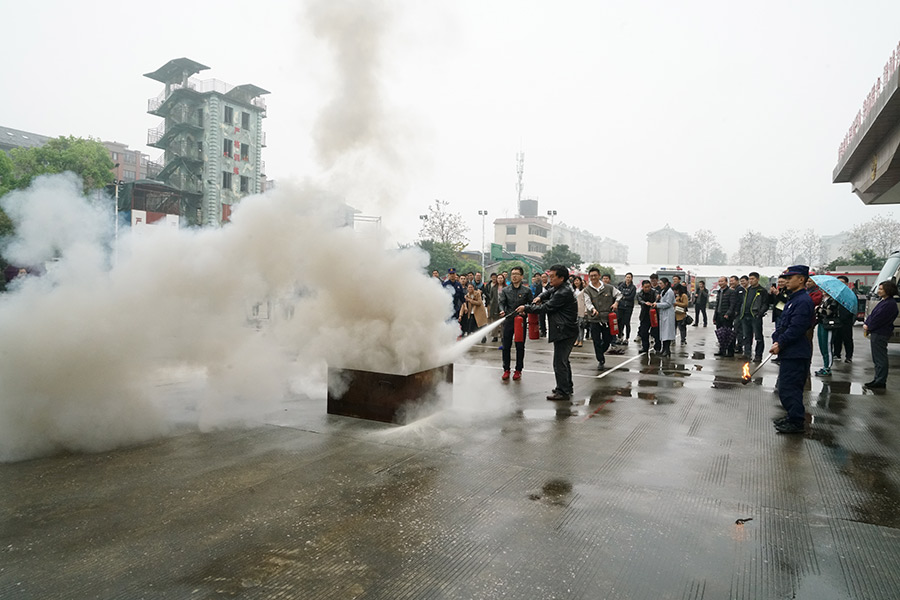 培訓現(xiàn)場,消防隊教官向大家詳細講解了滅火器的種類、使用方法、日常維護等相關(guān)知識,并現(xiàn)場示范了干粉滅火器的使用步驟。大家隨后有序到達指定的演練區(qū)域,按照學習的使用方法對模擬火場進行了實地撲救,參訓人員基本做到了操作規(guī)范、方法正確、態(tài)度端正、撲救有效的演練要求,達到了預期的效果。