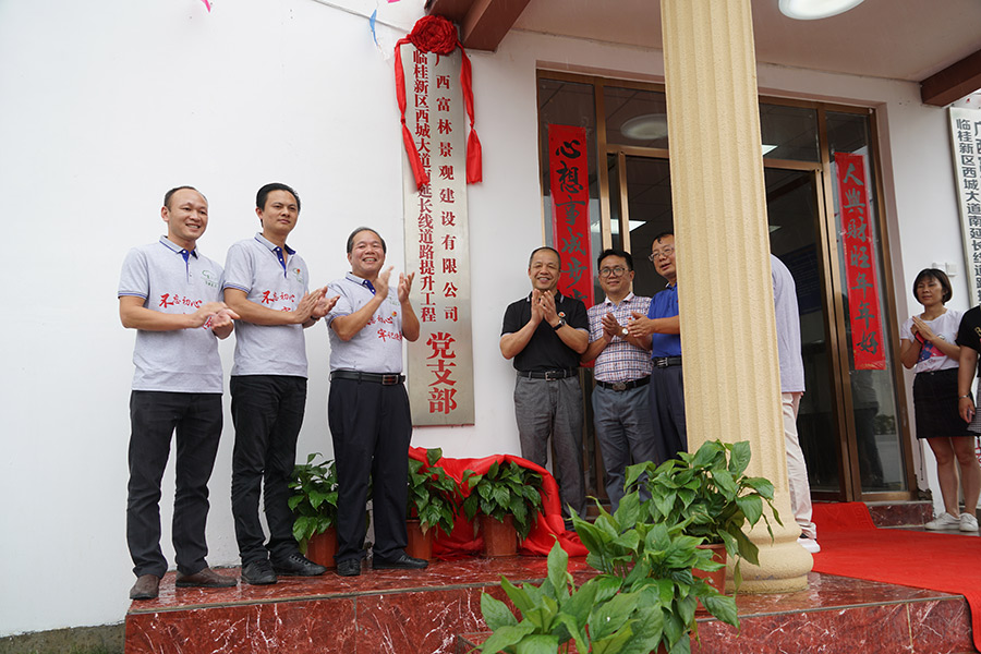 為了進(jìn)一步發(fā)揮基層黨組織戰(zhàn)斗堡壘作用,加快推進(jìn)項(xiàng)目建設(shè),6月26日下午,在西城大道南延長(zhǎng)線項(xiàng)目現(xiàn)場(chǎng),舉行了“廣西富林景觀建設(shè)有限公司臨桂新區(qū)西城大道南延長(zhǎng)線道路提升工程黨支部”揭牌活動(dòng)。