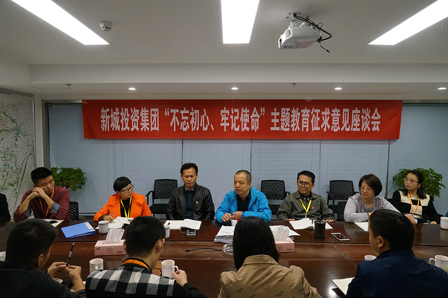 10月25日,根據(jù)開展“不忘初心、牢記使命”主題教育工作部署,新城投資集團召開了征求意見座談會,聽取與會人員對班子成員存在突出問題的反映,以及對改進工作作風、改進工作的意見建議。會議由主題教育領(lǐng)導小組組長、董事長周道林主持,班子成員及各部室、子公司負責人參加座談會。