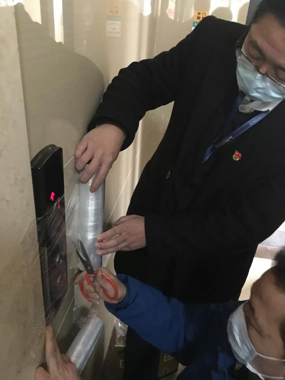 工程部在其部門負責人、共產黨員周成同志的帶領下,全員提前返崗。通過給小區(qū)所有入戶門對講系統(tǒng)及電梯內按鍵穿上每天一換的保鮮膜“保護外套”、給每臺電梯內裝上業(yè)主按鍵時使用的抽紙等方法,最大程度減少接觸病菌細菌的幾率,不留隱患,給業(yè)主創(chuàng)造一個健康、 安心的居家環(huán)境,為所有業(yè)主守住這道防疫防線。
