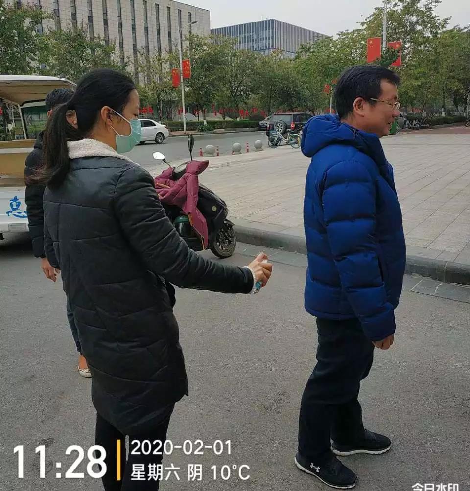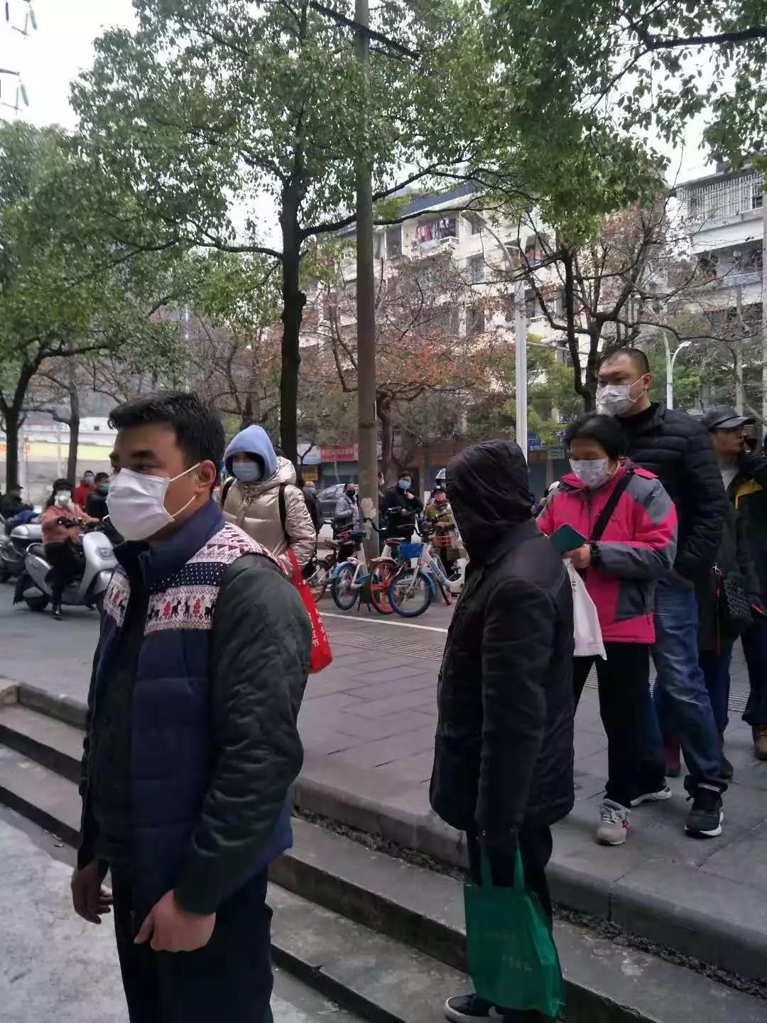 ▲冷冷的天氣,唐忠祥同志在各藥店和醫(yī)療器械機構門口排隊采購物資。