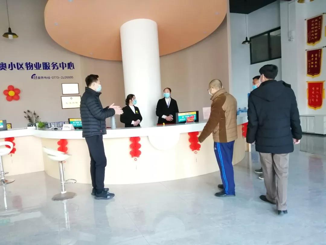 ▲桂醫(yī)·熙境項(xiàng)目對電梯、單元樓大廳、客服中心等地噴灑消毒水。