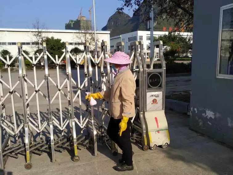 ▲秧塘工業(yè)園項(xiàng)目對大門、崗?fù)?、垃圾桶等區(qū)位進(jìn)行消毒。護(hù)衛(wèi)隊(duì)員也戴上了醫(yī)用口罩。