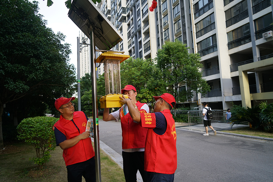 ▲黨員志愿者檢查清理公共設(shè)施