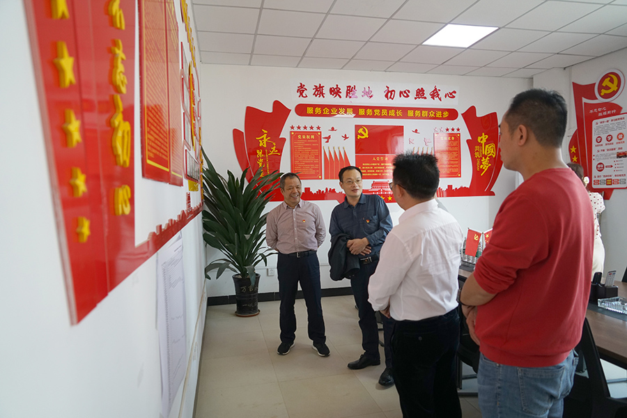 蔣玖明一行來(lái)到黨員活動(dòng)室,察看了項(xiàng)目黨建制度、黨建活動(dòng)、施工建設(shè)及安全防疫等方面資料上墻情況,了解了“11321工作法”實(shí)效,黨員在聯(lián)建黨組織的帶領(lǐng)下充分發(fā)揮示范帶頭作用、促進(jìn)項(xiàng)目建設(shè)的情況。蔣玖明強(qiáng)調(diào),聯(lián)合黨支部要積極探索黨建項(xiàng)目化管理模式,建議新區(qū)在項(xiàng)目招投標(biāo)中增加黨建分值一項(xiàng),充分體現(xiàn)新區(qū)對(duì)黨建引領(lǐng)項(xiàng)目建設(shè)的關(guān)注,把黨支部擺在一線,讓黨員走在前列,有效促進(jìn)黨建工作與建設(shè)工作的全面嵌入、同頻共振、相互促進(jìn)。另一方面,我們要緊扣臨桂新區(qū)黨建品牌 “黨旗映勝地、初心照我心”這個(gè)主旨,深入挖掘那些能較好發(fā)揮“三個(gè)勇于”紅軍長(zhǎng)征精神的基層黨員典型,凸顯黨員在項(xiàng)目一線、服務(wù)一線的先鋒模范作用,進(jìn)一步弘揚(yáng)主旋律、凝聚正能量,講好黨員的故事,營(yíng)造品牌創(chuàng)建的濃厚氛圍。