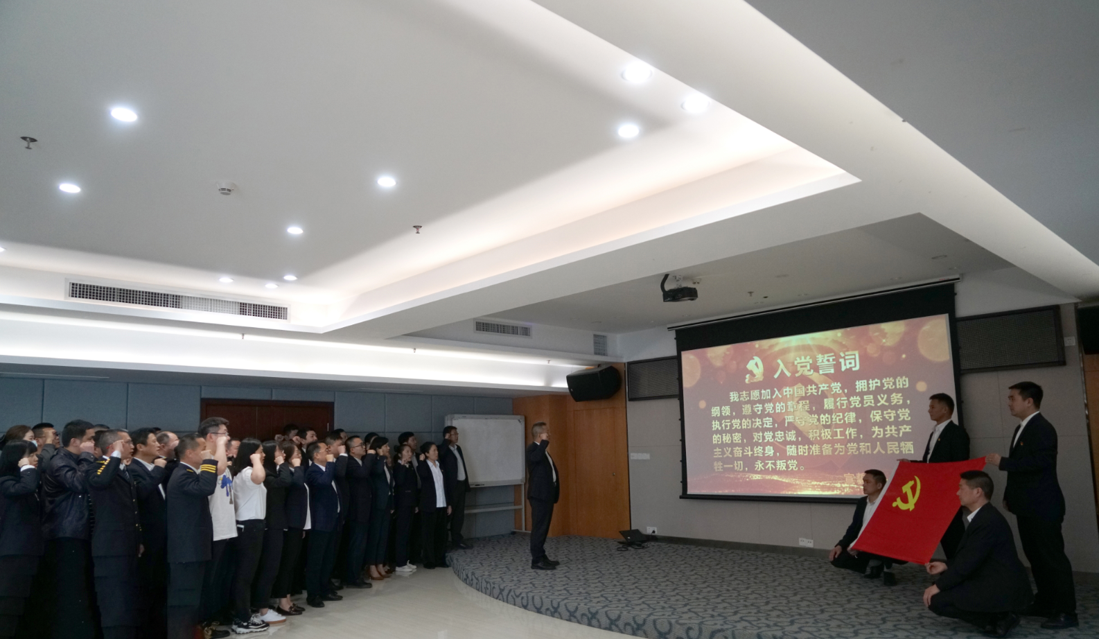 學(xué)習(xí)結(jié)束后,全體黨員在周道林的領(lǐng)誓下一起重溫了入黨誓詞。