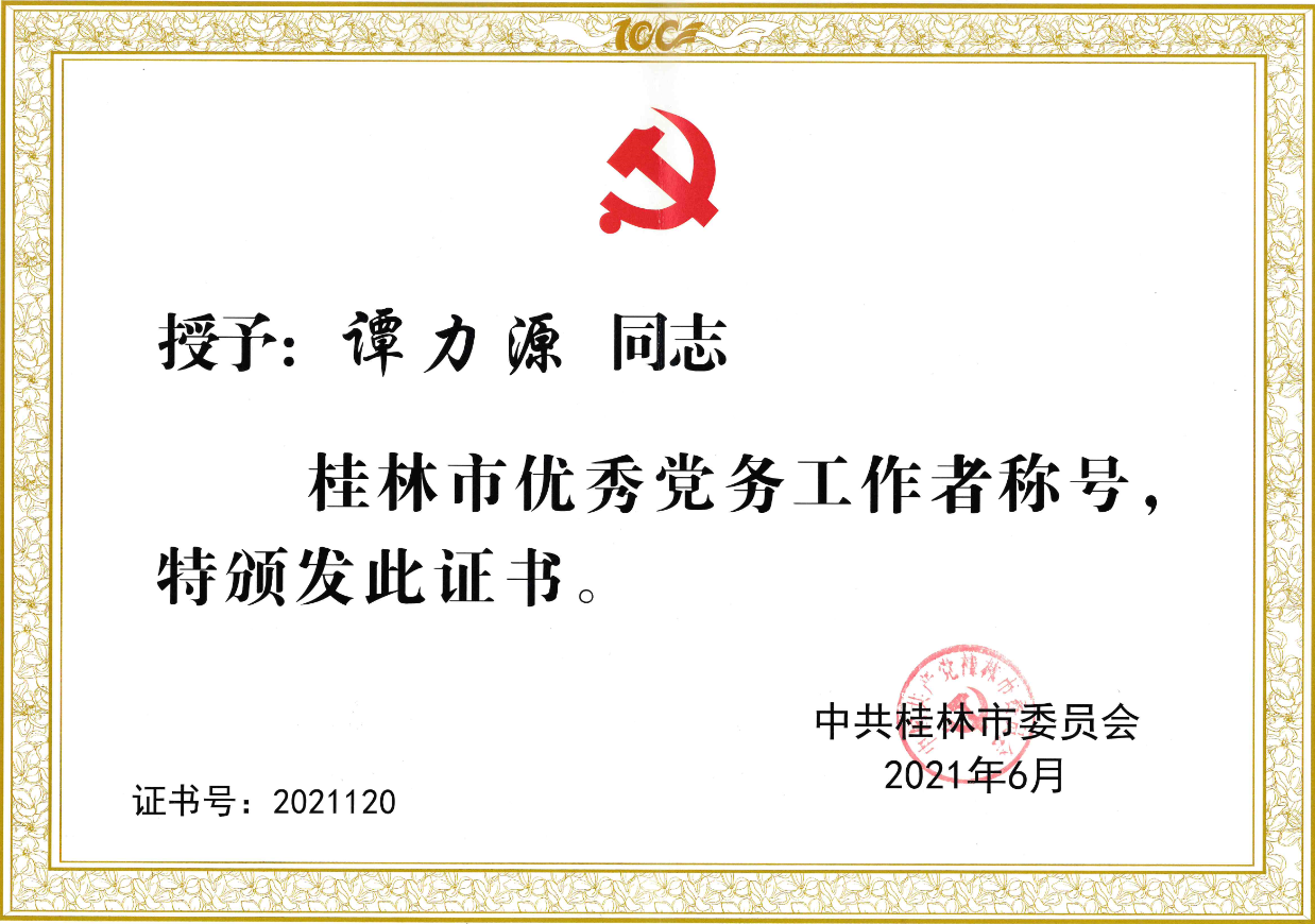 在慶祝中國共產(chǎn)黨成立100周年之際,為弘揚正氣、樹立標(biāo)桿,激勵各級黨組織和廣大共產(chǎn)黨員堅守初心、勇?lián)姑?、奮發(fā)有為,市委決定對150名共產(chǎn)黨員、120名黨務(wù)工作者、150個先進(jìn)基層黨組織予以表彰,分別授予“桂林市優(yōu)秀共產(chǎn)黨員”、“桂林市優(yōu)秀黨務(wù)工作者”、“桂林市先進(jìn)基層黨組織”稱號。