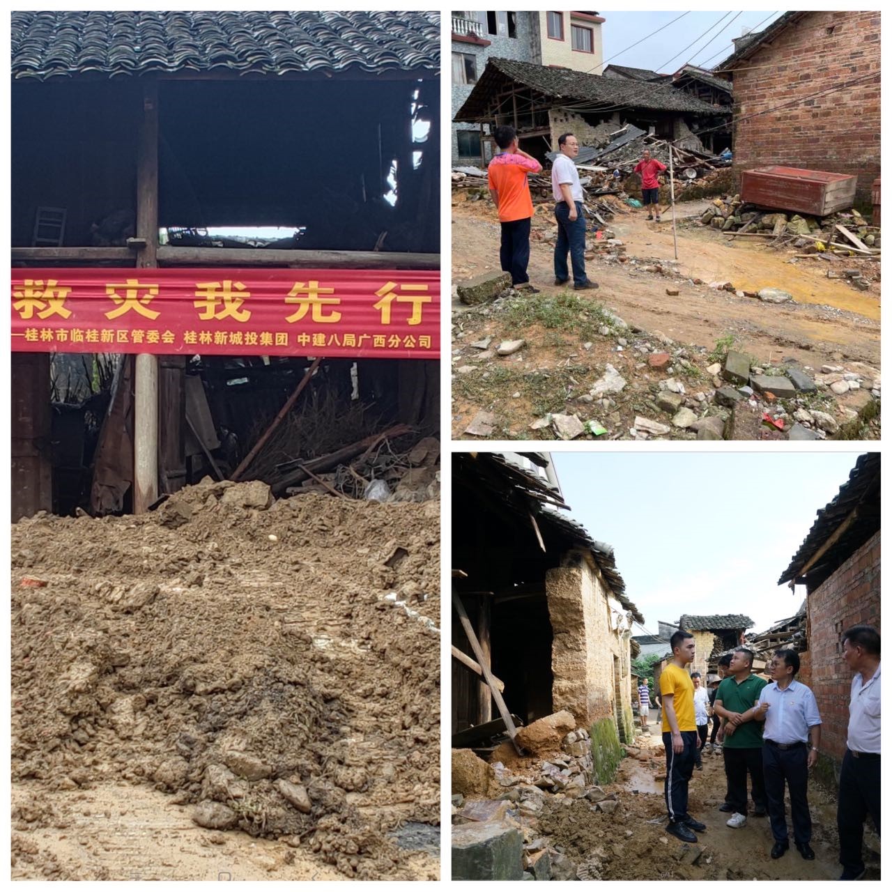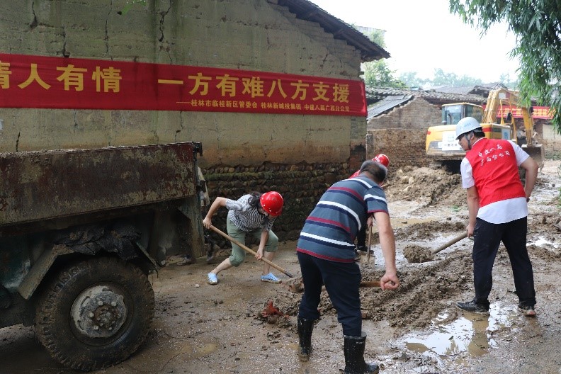 近期,臨桂新區(qū)鄉(xiāng)村振興聯(lián)系點五通鎮(zhèn)羅江村連續(xù)遭遇多輪強降雨侵襲,鄉(xiāng)村路面房屋受災嚴重,村落存在大量積水和淤泥。面對災情,臨桂新區(qū)黨工委委員、管委會常務副主任李星明,新區(qū)黨工委委員、管委會副主任、機關黨委書記蔣玖明了解情況后,急群眾所急、想群眾所想,立即把這項艱巨任務交給了新城投集團黨總支,建議由會展中心項目部臨時聯(lián)合黨支部作為實施主體。新城投集團黨總支副書記、總經(jīng)理黃峻按照部署立刻布置相關工作,安排集團黨總支組織委員、工會主席、聯(lián)合黨支部副書記譚力源組織聯(lián)合黨支部成員單位——中建八局廣西公司桂林項目部具體緊急落實,要求發(fā)揮央企技術優(yōu)勢和國企平臺資源,為鄉(xiāng)村災后重建做好服務保障、力所能及的為村民解憂,以此提升“黨旗映勝地”黨建品牌的時代內(nèi)涵。