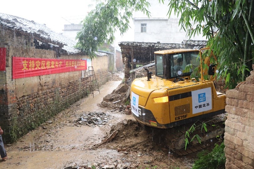 村內(nèi)巷道縱橫交錯,環(huán)境復雜,清淤工作遠比想象的困難,洪水剛退的時候,堆積如山的淤泥垃圾嚴嚴實實地堵死了每條路口,挖土機、鏟車、垃圾清運車等大型機械一時間無法順利進入。在解決清理現(xiàn)場可能會涉及的供電、電信、免責協(xié)議等問題后,一場以“自力更生、發(fā)動群眾、確保安全、多方支援” 為主題的巷道清淤“戰(zhàn)”于6月28日正式打響了。