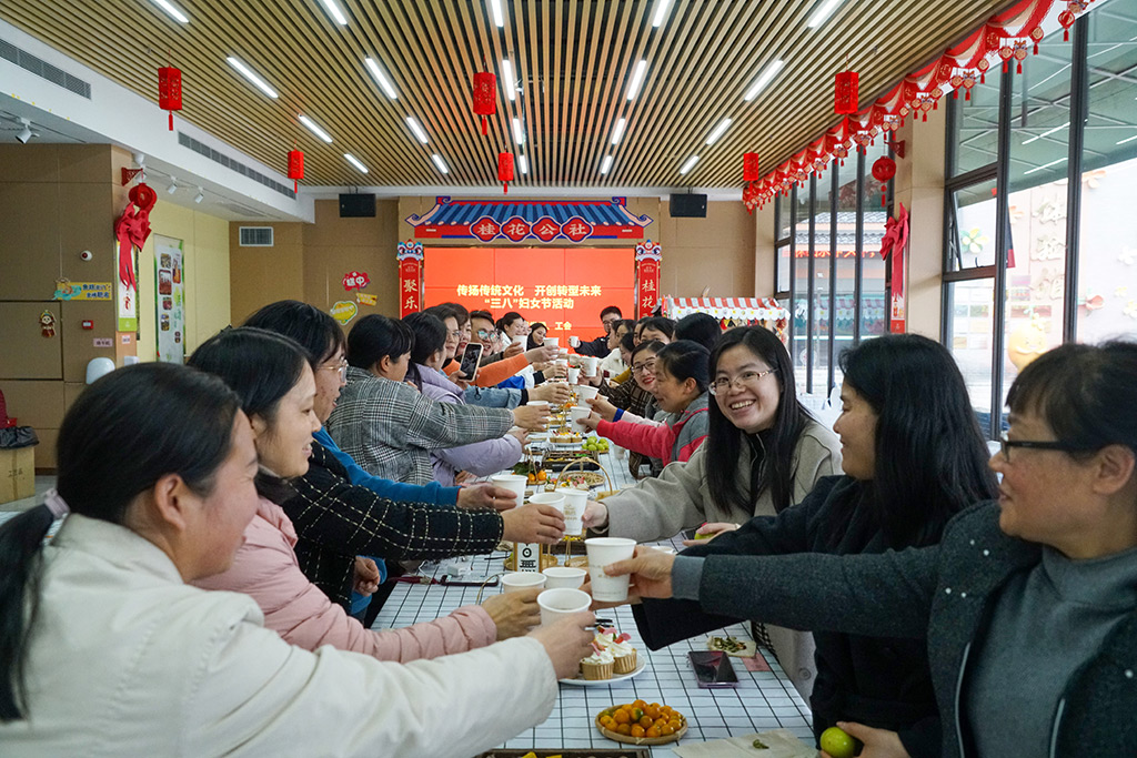 第三項(xiàng)活動(dòng)是午后茶敘。大家圍一方天地,生一爐煙火,飲一壺清茶,享受春日午后時(shí)光。輕松愉悅的氛圍讓女職工們沉浸其中,大家分別從“工作體會(huì)、日常生活、團(tuán)隊(duì)精神、經(jīng)營理念等方面”暢談心得感悟,祝愿公司在轉(zhuǎn)型的路上越走越好,業(yè)績節(jié)節(jié)升高。聊到興起處,集團(tuán)工會(huì)主席譚力源忍不住高歌一曲助興,帶動(dòng)女職工們盡情展現(xiàn)自己的才藝,有的一展歌喉,有的輕歌曼舞,現(xiàn)場充滿了歡聲笑語,洋溢著喜悅的氣氛,大家暫時(shí)忘卻工作中的忙碌,治愈生活中的疲憊。