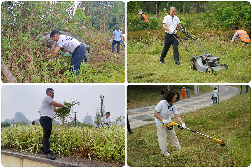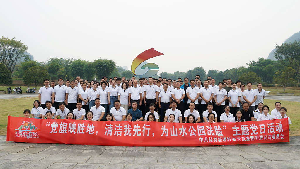 山水公園作為桂林新區(qū)的一張亮麗名片,承載著展現(xiàn)城市風貌的重要使命。在國內經濟下行、財政支持相對不足的情況下,桂林新城投資開發(fā)集團有限公司(簡稱“新城投集團”)勇挑重擔,為政府承擔起公園日常維護之責。2024年10月14日新城投集團立足自身實際,充分發(fā)揮黨組織戰(zhàn)斗堡壘作用和黨員先鋒模范作用,廣泛動員黨員干部沖鋒在前,以實際行動踐行初心使命,積極開展“黨旗映勝地,清潔我先行,為山水公園洗臉”主題黨日活動,這一行動,既為了維護桂林的良好形象,又切實保障了市民的生活舒適度。集團黨委副書記(主持工作)、副董事長、總經理朱毅攜公司領導班子成員黨委副書記兼紀委書記譚力源,黨委委員、董事、副總經理葉青旺,黨委委員、董事、副總經理何萌,董事、副總經理劉敏,第一、第二、第三黨支部全體黨員(含預備黨員)、發(fā)展對象、入黨積極分子、遞交入黨申請書員工共100余名黨員干部參加活動。