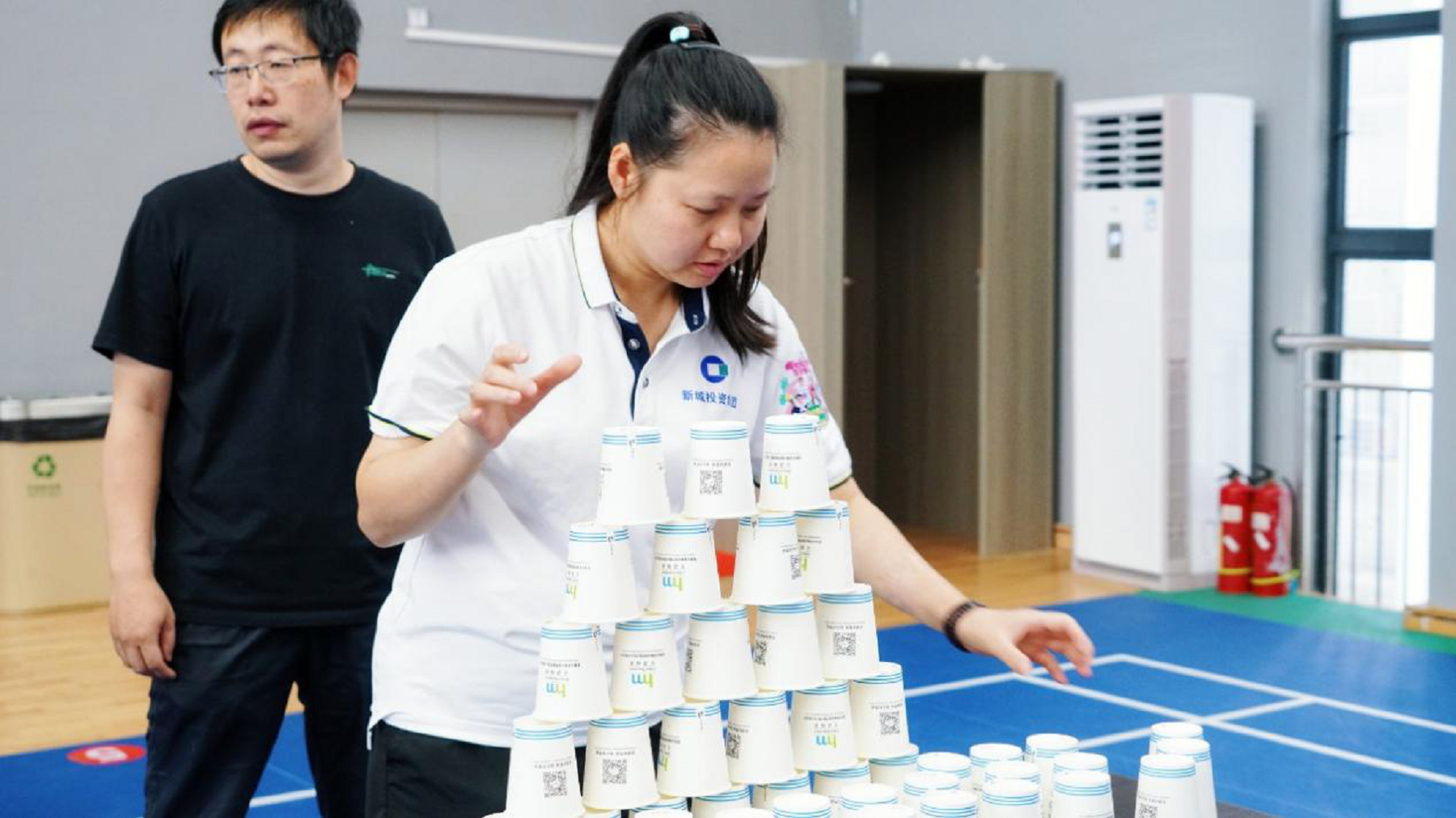 “筑夢高塔”環(huán)節(jié)里,壽星們拆搭紙杯搭建高塔,每放置一個紙杯都全神貫注,一座承載著歡樂與期待的紙杯高塔緩緩成型,現(xiàn)場氣氛緊張又充滿樂趣。