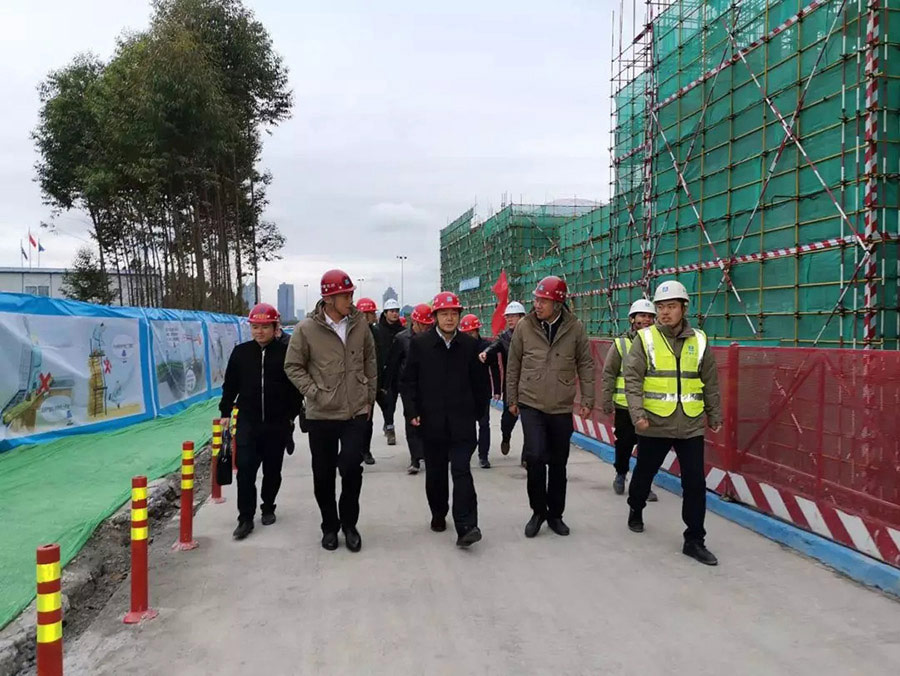 圖為彭代元副市長(zhǎng)一行觀摩基地項(xiàng)目現(xiàn)場(chǎng)