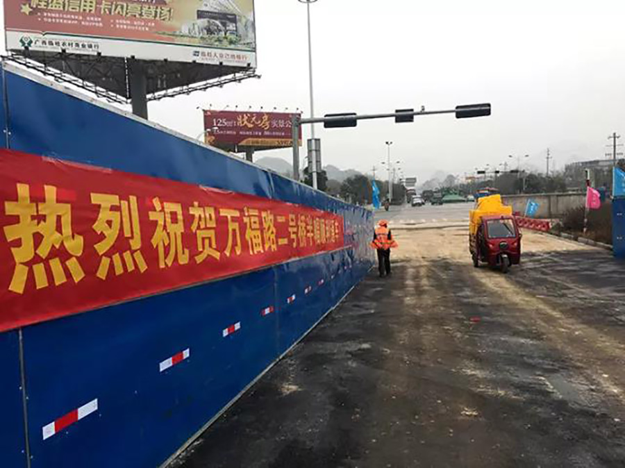 根據(jù)市政府、臨桂區(qū)及新區(qū)管委關(guān)于加快臨桂新區(qū)水系通航、實現(xiàn)橋梁通車的時間節(jié)點要求,新城投資集團按照臨桂區(qū)、新區(qū)管委領(lǐng)導的指示精神,科學組織、精心施工、搶抓工期,逢節(jié)假日繼續(xù)加班加點,于2018年1月19日順利實現(xiàn)了半幅臨時通車,同時橋下圍堰拆除,達到了水系通航條件。