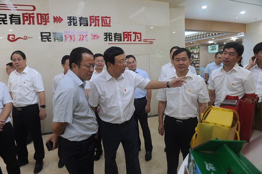 揭牌儀式結束后,趙樂秦、秦春成、粟增林、潘永建等市領導步入黨群服務中心參觀。在黨史黨建工作展示、人才家園、第一書記推薦產品等區(qū)域,趙樂秦對上述區(qū)域及充分發(fā)揮服務職能提出寶貴意見。