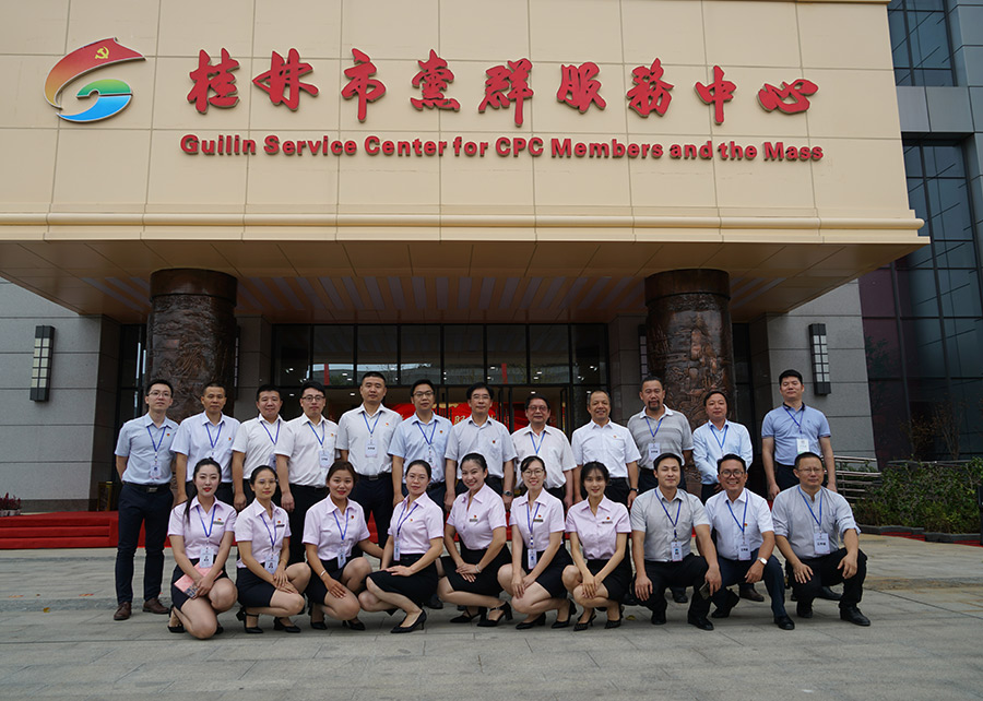 桂林市黨群服務中心位于臨桂新區(qū)公園北路新城投資集團辦公樓副樓,中心圍繞打造“開放式、集約化、共享性、先鋒色”綜合服務平臺的目標,設立了黨群業(yè)務受理、便民生活服務、黨史黨建工作展示、智慧黨建、黨群組織活動等區(qū)域,重點凸顯集成城市基層黨建的樞紐型平臺、拓展黨群貼心服務的一站式窗口、融合智慧黨建運行的信息化總部、創(chuàng)新黨內生活教育的體驗式陣地、連接黨員志愿服務的聯(lián)盟性基地、分享黨建經驗交流的孵化性園地、凝聚黨員人才學習的成長型家園、共建嵌入勝地建設的紅色總驛站等“八大”功能定位,是一個集教育、管理、咨詢、培訓、服務、體驗為一體的黨群工作新平臺。