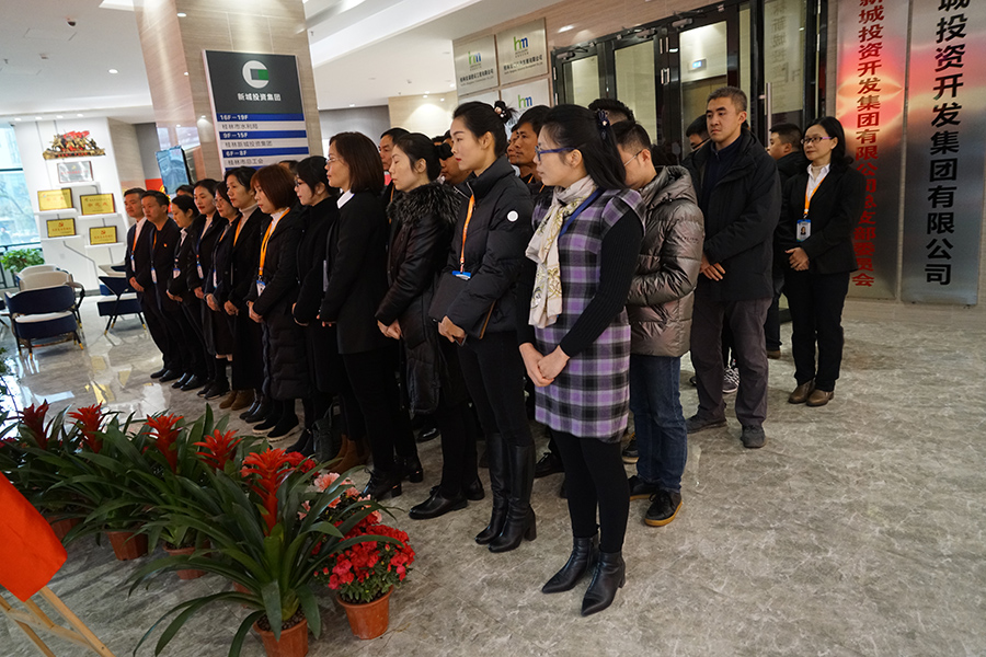12月24日上午,在新城投資集團(tuán)一樓舉行了桂林市宏謀會展投資有限公司(以下簡稱宏謀會展公司)揭牌成立。臨桂新區(qū)工委委員、管委會副主任文杰,新城投資集團(tuán)黨支部書記、董事長周道林揭牌并致辭?;顒佑尚鲁峭顿Y集團(tuán)副總經(jīng)理鄭善華主持,集團(tuán)主管以上干部職工參加。