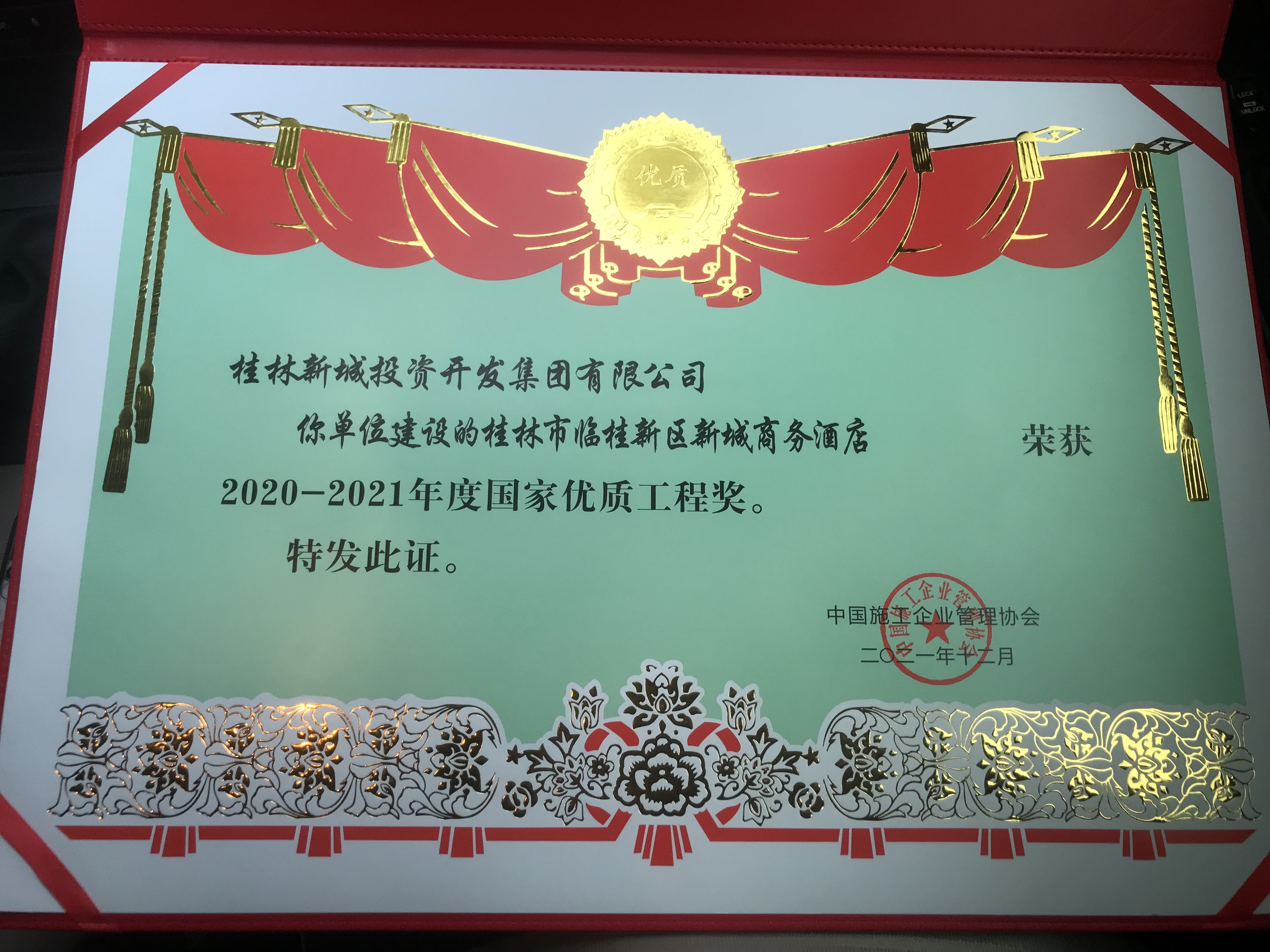喜報!新城投集團兩項工程榮獲2020-2021年度國家優(yōu)質(zhì)工程獎