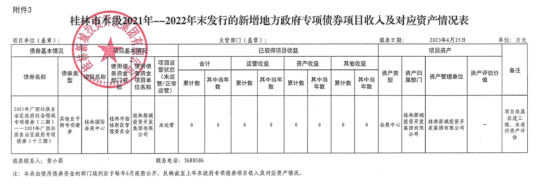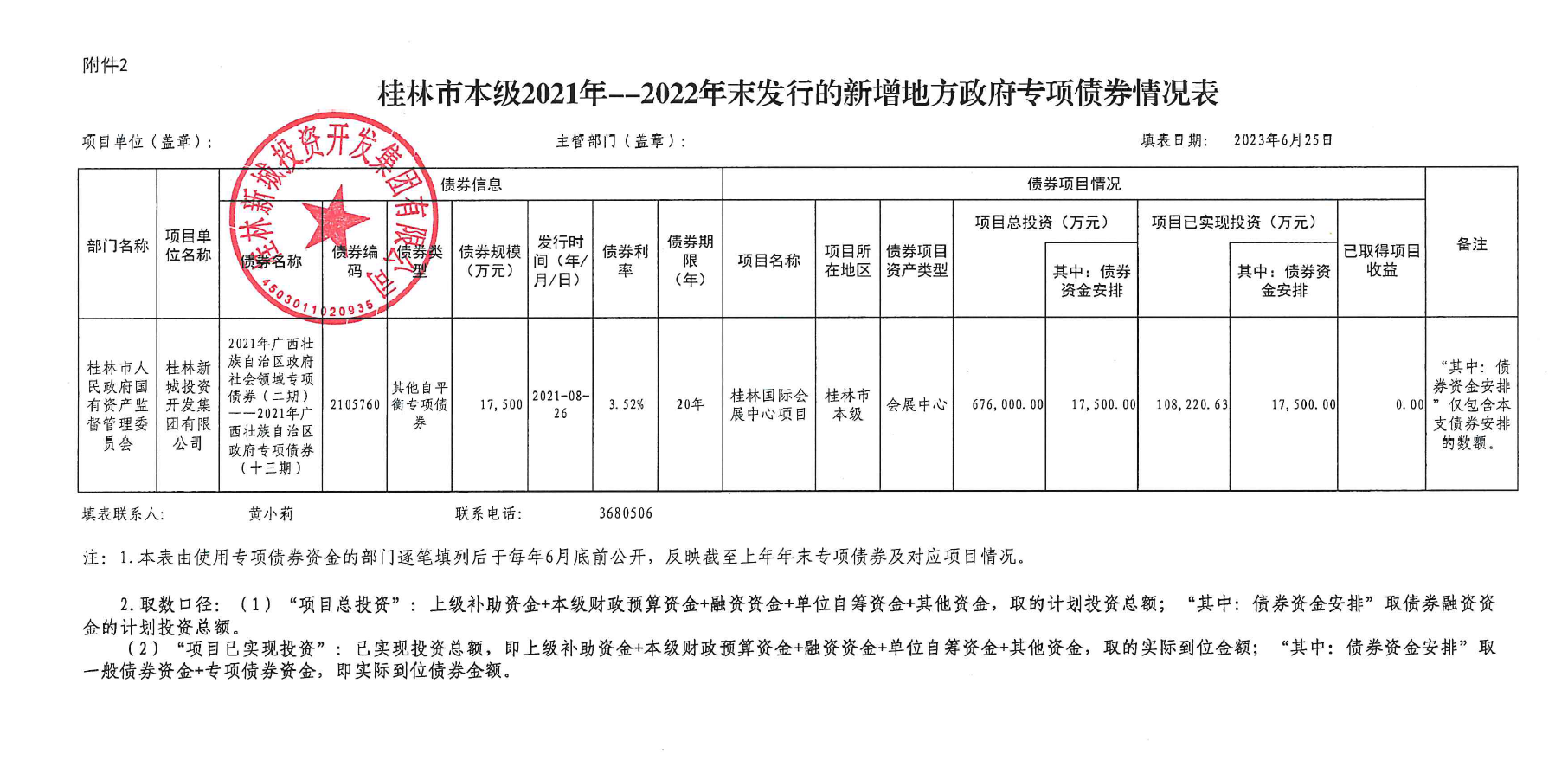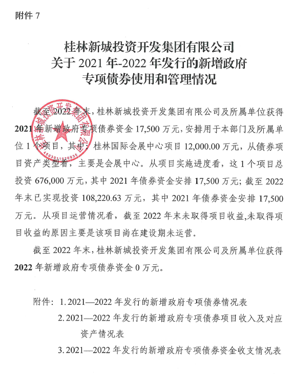 桂林新城投資開發(fā)集團(tuán)有限公司關(guān)于2021年-2022年發(fā)行的新增政府專項(xiàng)債券使用和管理情況