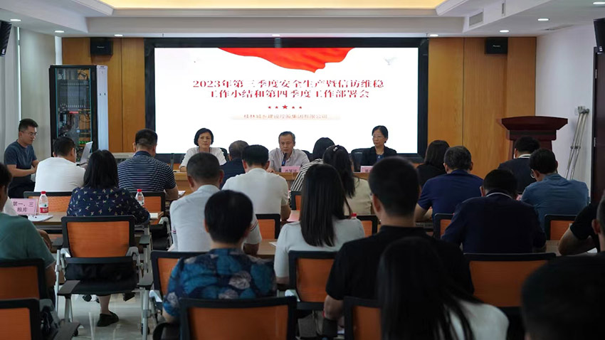 2023年10月26日,城建集團(tuán)黨委副書記、副董事長、總裁肖笛波主持召開2023年第三季度安全生產(chǎn)暨信訪維穩(wěn)工作小結(jié)和第四季度工作部署會,城建集團(tuán)各部室、下屬子公司主要負(fù)責(zé)人參加會議。新城投集團(tuán)黨委副書記、副董事長、總經(jīng)理朱毅對公司近期安全生產(chǎn)工作情況進(jìn)行匯報(bào)。會上,肖笛波對新城投集團(tuán)將黨建嵌入到安全生產(chǎn)管理工作的創(chuàng)新做法,以及對桂林新國際會展中心順利舉辦一系列大型活動的安全保障工作予以充分肯定,要求新城投集團(tuán)進(jìn)一步落實(shí)檢查和考核職責(zé),及時發(fā)現(xiàn)并解決各類安全隱患。