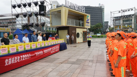 譚力源在講話中回顧了新城投集團(tuán)秀峰區(qū)環(huán)衛(wèi)項(xiàng)目的發(fā)展歷程。作為資產(chǎn)超300億元的綜合性國有企業(yè),集團(tuán)黨委始終堅(jiān)持黨建與業(yè)務(wù)深度融合、雙向促進(jìn),以“黨旗映勝地”黨建品牌為引領(lǐng),在城市建設(shè)主戰(zhàn)場、城市運(yùn)營第一線等領(lǐng)域交出亮眼答卷。他指出,自承接秀峰區(qū)環(huán)衛(wèi)項(xiàng)目以來,項(xiàng)目452名職工以“繡花功夫”守護(hù)城市顏值,在三屆桂林馬拉松賽事和三屆“三月三”民族歌圩薈活動(dòng)的環(huán)衛(wèi)保障、“6.19”特大洪澇災(zāi)害應(yīng)急清淤、漓江河“消劣返清”整治行動(dòng)等重大任務(wù)中沖鋒在前、勇挑重?fù)?dān)。這些成績的背后,凝聚著每一位環(huán)衛(wèi)職工的心血與汗水,是“勞動(dòng)最光榮”的生動(dòng)注腳。