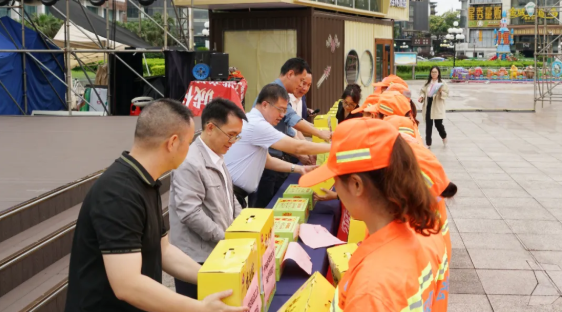 活動(dòng)現(xiàn)場氣氛熱烈而溫馨,與會(huì)領(lǐng)導(dǎo)向環(huán)衛(wèi)工人代表逐一送上端午慰問品。一份份承載著節(jié)日祝福的慰問品,既是對環(huán)衛(wèi)職工辛勤付出的真誠肯定,更是對“城市美容師”的崇高禮贊。接過禮包的環(huán)衛(wèi)工人們紛紛表示,將以更加飽滿的熱情投入工作,把城市打掃得更干凈、更美麗!