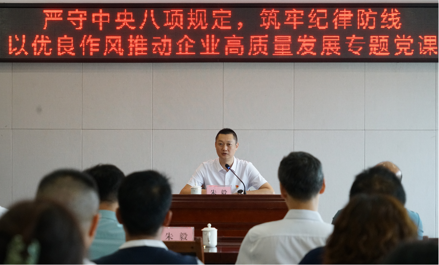 2025年7月8日,集團(tuán)黨委書記、董事長朱毅同志以“嚴(yán)守中央八項規(guī)定,筑牢紀(jì)律防線,以優(yōu)良作風(fēng)推動企業(yè)高質(zhì)量發(fā)展”為題,為集體黨員干部講授專題黨課,由集團(tuán)黨委副書記、紀(jì)委書記譚力源主持。此次黨課圍繞理論認(rèn)知、案例警示、實踐落實三個方面展開,深入淺出地闡釋了中央八項規(guī)定精神的豐富內(nèi)涵與重要意義。