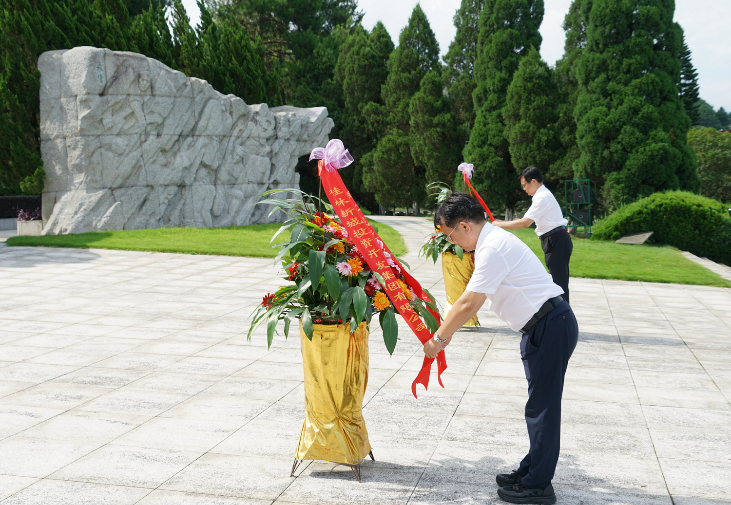 活動(dòng)當(dāng)天,大家首先來(lái)到桂林興安縣湘江烈士紀(jì)念碑園,在莊嚴(yán)的紀(jì)念碑前整齊列隊(duì),懷著崇敬的心情向烈士敬獻(xiàn)花籃,表達(dá)對(duì)革命先烈的深切緬懷和崇高敬意。在市司法局黨組書(shū)記、局長(zhǎng)韓覓的帶領(lǐng)下,全體黨員高舉右手,重溫入黨誓詞,堅(jiān)定為共產(chǎn)主義事業(yè)奮斗終身的信念與決心。