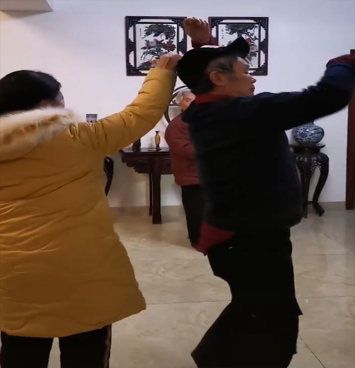 全家把老奶奶逗得笑起合不攏嘴